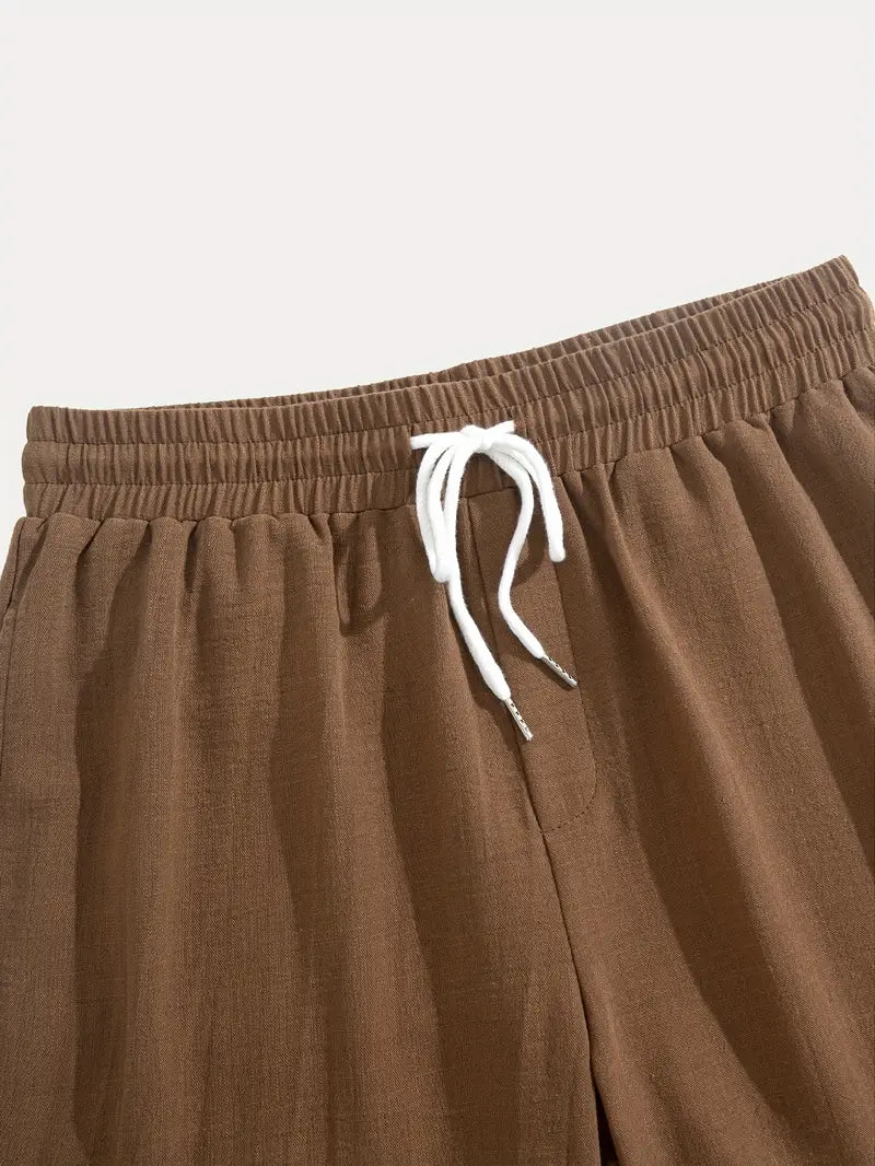 Introducing our Men’s V-Neck Linen Blend 2-Piece Set, designed for ultimate comfort and effortless style during the warmer months. This set features a half-sleeve V-neck shirt paired with drawstring waist shorts, both crafted from a breathable spandex and linen blend fabric.